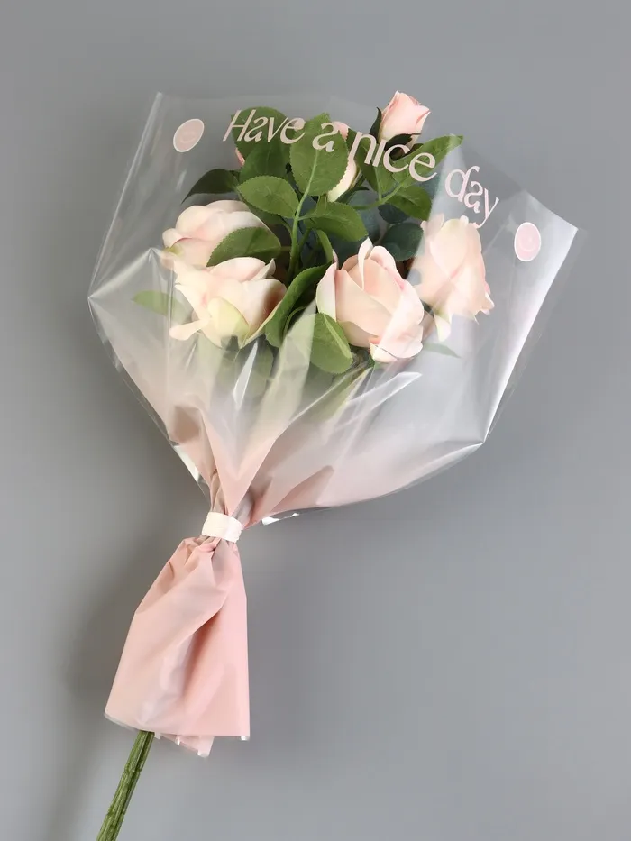 - Прочный материал: Изготовлен из БОПП-пленки. Устойчив к разрывам и защищает букет от повреждений.