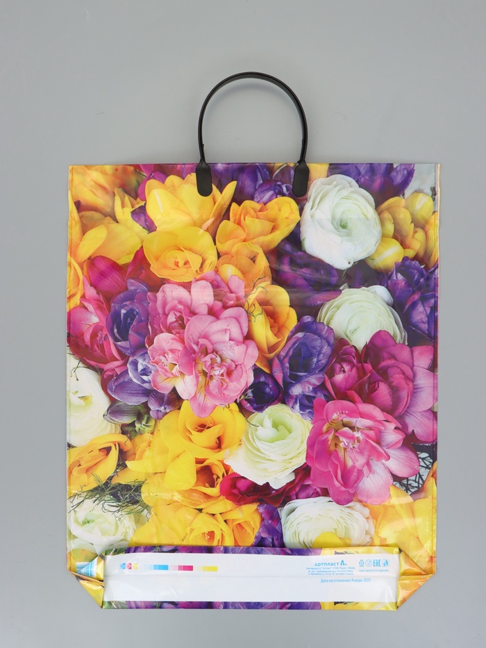 Пакет «Весенний букет», полиэтиленовый с пластиковой ручкой, 38×45 + 3 см, 90 мкм — Характеристики