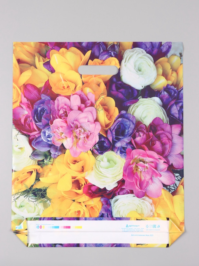 Пакет «Весенний букет», полиэтиленовый с вырубной ручкой, 38×45 + 3 см, 60 мкм — Характеристики