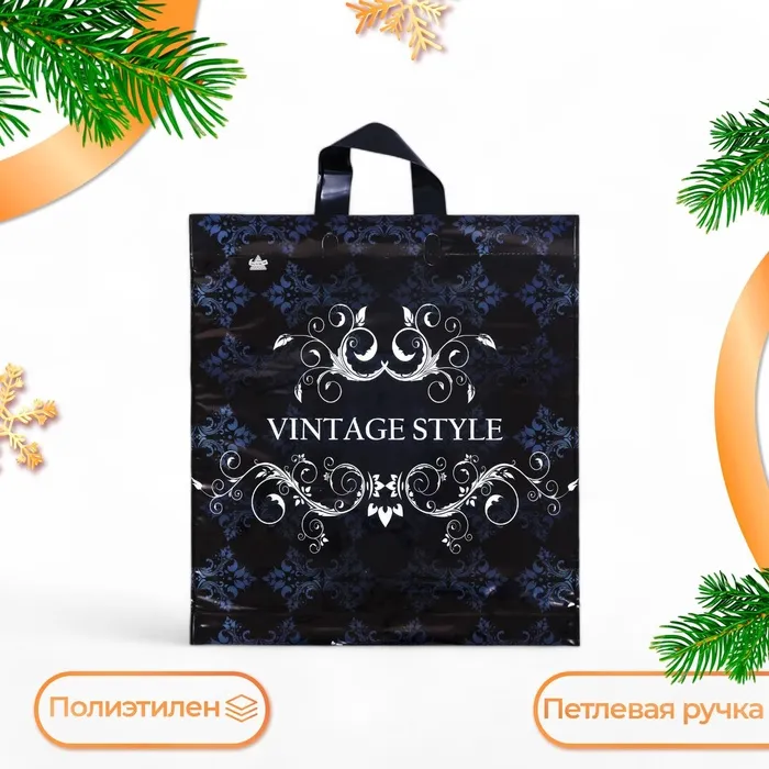 Пакет «Винтажный стиль», полиэтиленовый с петлевой ручкой, 44×40 см, 70 мкм — Характеристики