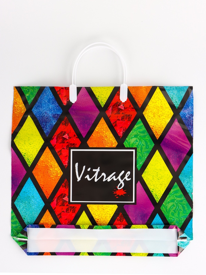 Прочный пакет с витражным рисунком — это стильный и функциональный аксессуар для подарков или покупок. Его декоративный дизайн привлекает внимание, а конструкция рассчитана на ежедневное использование.