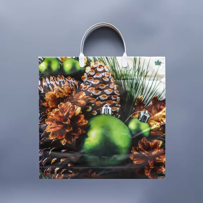 Пакет "Зеленые шары", полиэтиленовый с пластиковой ручкой, 37 х 36 см. — Характеристики