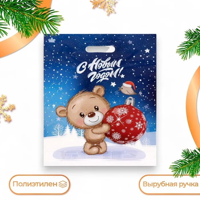 Пакет «Зимний мишка», полиэтиленовый с вырубной ручкой, 40×31 см — Характеристики