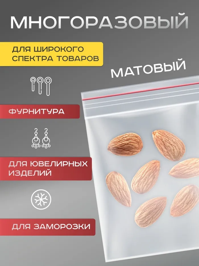 Прочные, плотные пакеты с замком Zip Lock - это надежная и недорогая упаковка для любых товаров, особенно сыпучих, таких как чай, кофе, корм для животных, бисер, крупа, таблетки, ювелирные изделия, фурнитура, мелкие запчасти, и пр. Пригодны для заморозки.