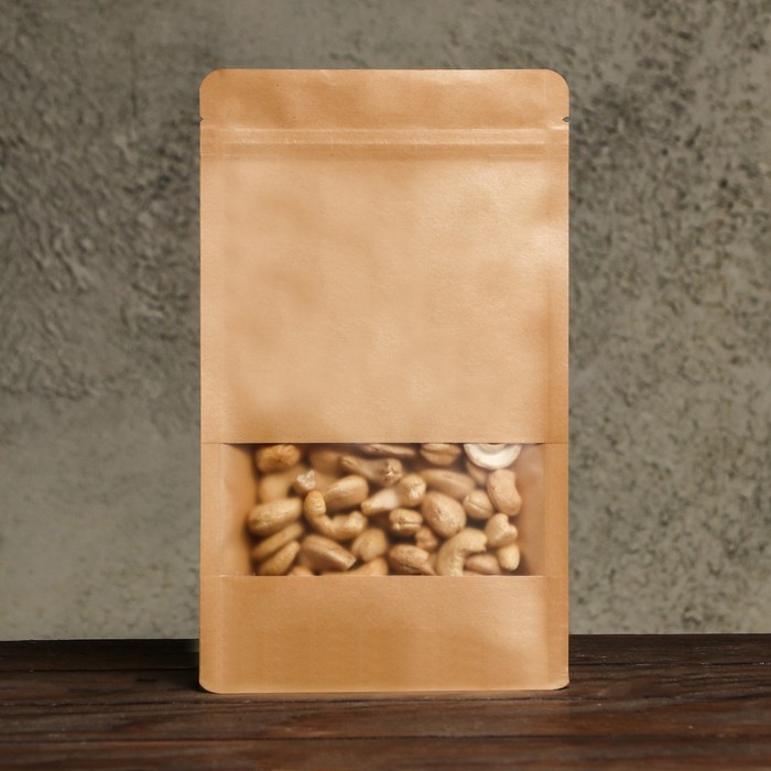 Пакет Zip - lock, крафт, с плоским дном, прямоугольное окно, 14×24 см — Характеристики