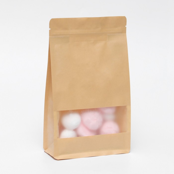 Пакет Zip - lock Крафт с плоским дном, прямоугольное окно, 16×26 см — Характеристики