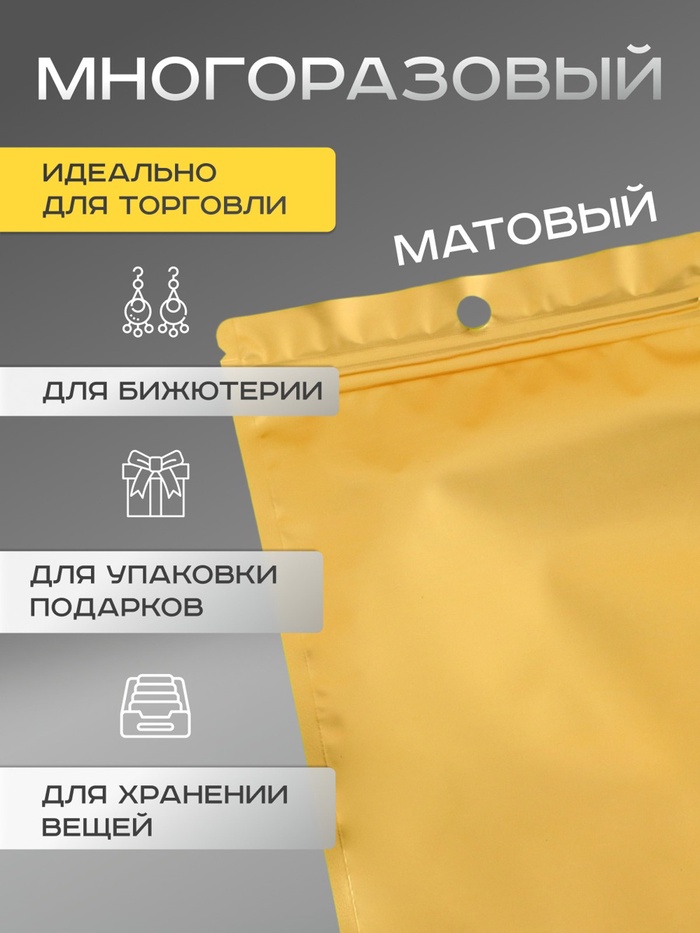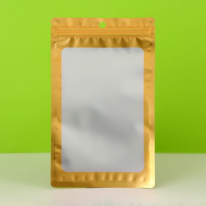 Стильная упаковка с надежной защитой! Золотые пакеты зип-лок с окошком — это универсальная упаковка с замком-слайдером. Металлизированный золотой цвет и прозрачное окно создают презентабельный вид для разных типов товаров.