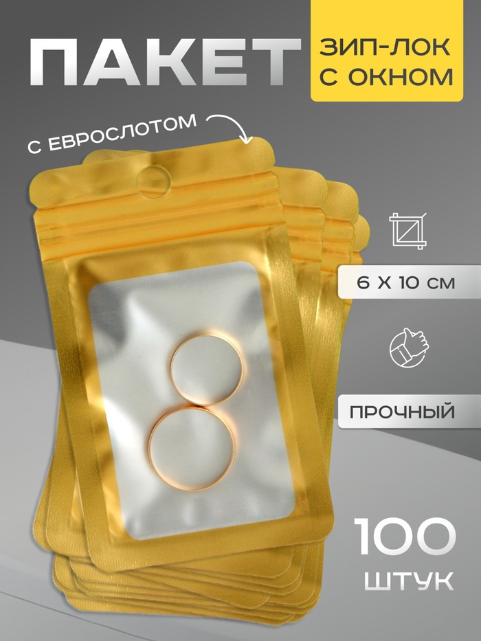 Пакет Зип-лок с окном, с еврослотом, золотой, 6×10 см — Характеристики