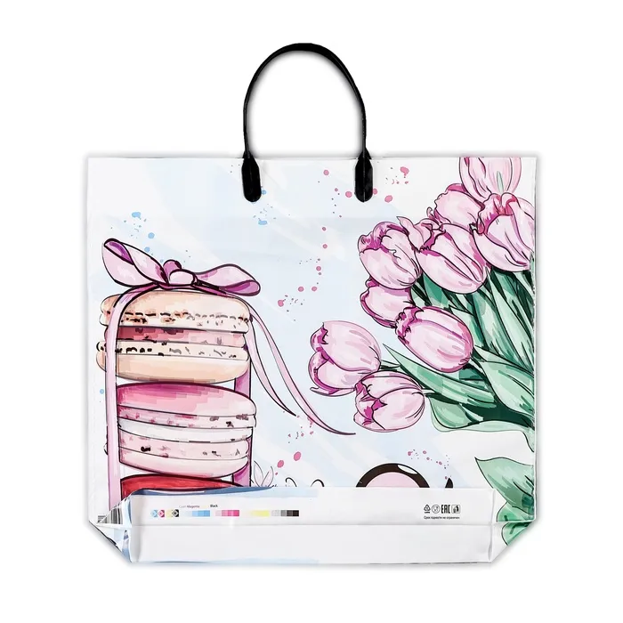 Прочный и надежный материал, из которого изготовлен этот пакет, гарантирует сохранность ваших покупок во время транспортировки. Оригинальный рисунок добавляет яркости и стиля вашему образу и делает покупки еще более приятными.