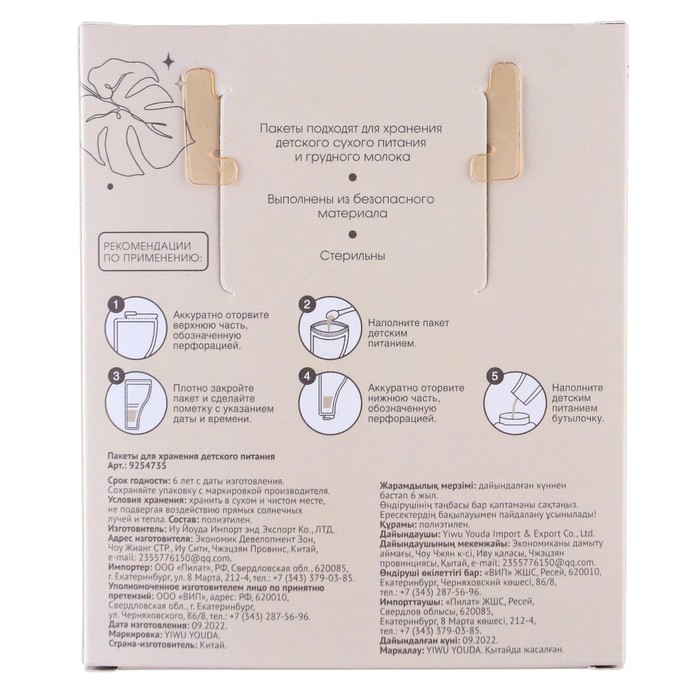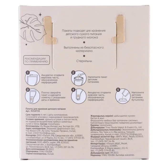 Пакеты для хранения грудного молока M&B, 100 мл., набор 15 шт — Характеристики