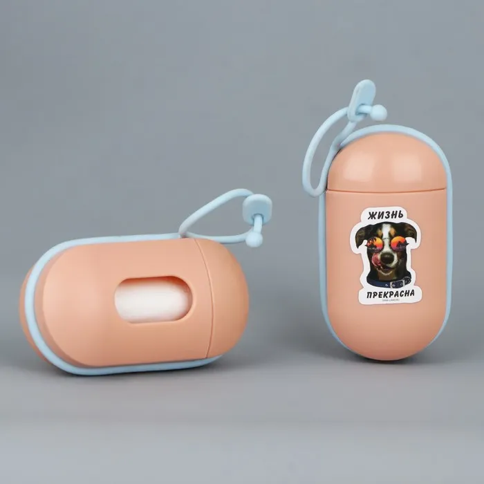 Пакеты для уборки за собаками в контейнере «Жизнь прекрасна», персиковый