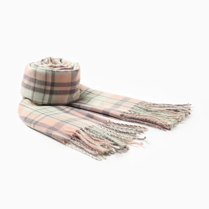 Палантин текстильный, цвет бежевый/серый, размер 68х175