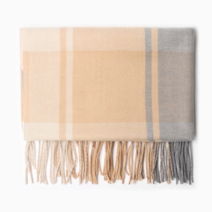 Палантин текстильный, цвет бежевый/серый, размер 68х175