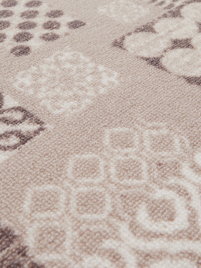 Ковёр сохраняет свой аккуратный вид годами. Он не боится регулярной чистки пылесосом. При необходимости палас можно освежить с помощью деликатной стирки при 30 °C с последующей горизонтальной сушкой. Такая забота гарантирует, что цвета останутся чистыми и яркими. Это решение для тех, кто ценит эстетику, не требующую постоянных хлопот.
