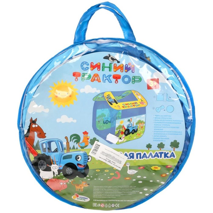 Развивающий потенциал: Игровая палатка способствует развитию воображения и социальных навыков. Палатка «Синий трактор» станет любимым местом для ролевых игр и отдыха вашего ребенка. Быстрая установка и мобильность позволяют использовать её дома и на природе.