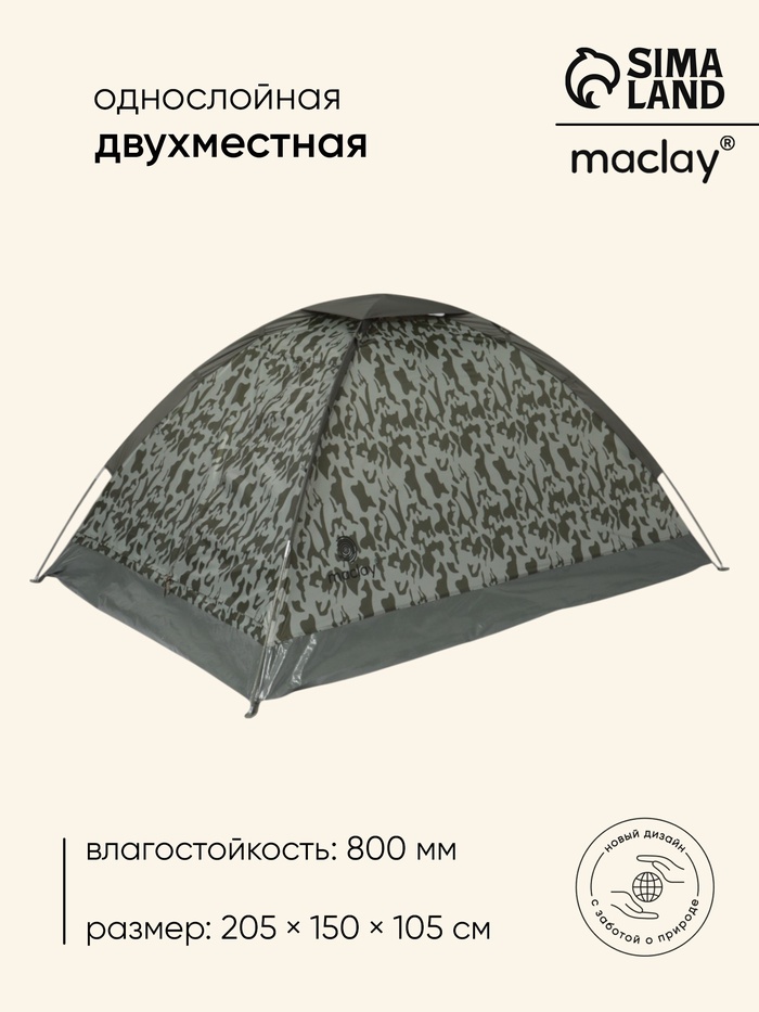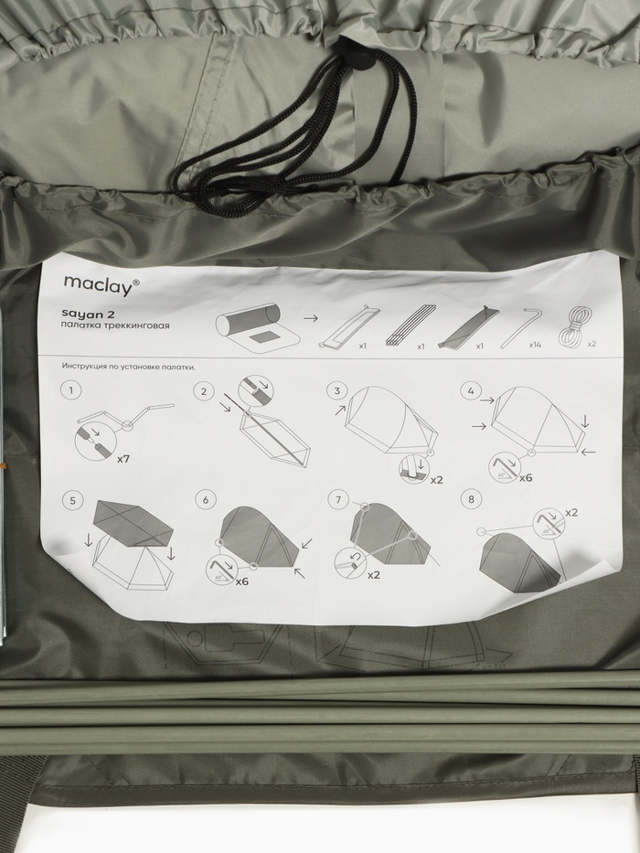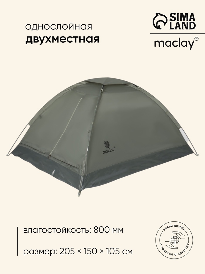 Палатка туристическая 2-х местная maclay sayan 2, 260×145×125 см, треккинговая, двухслойная, зелёная — Характеристики