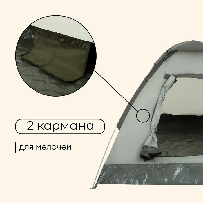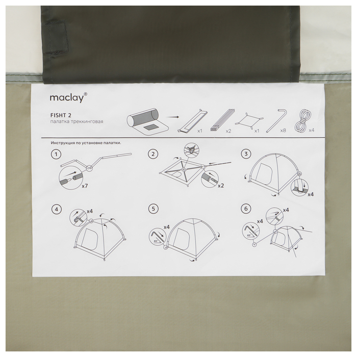 Палатка туристическая 2-местная maclay FISHT 2, 205×150×105 см, трекинговая, однослойная, зелёная — Характеристики