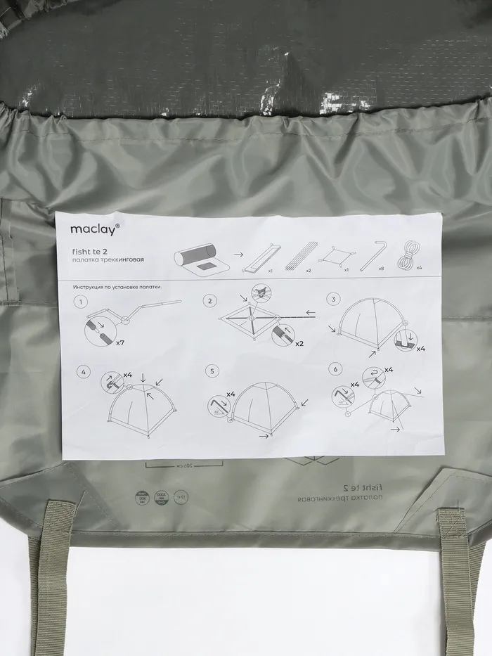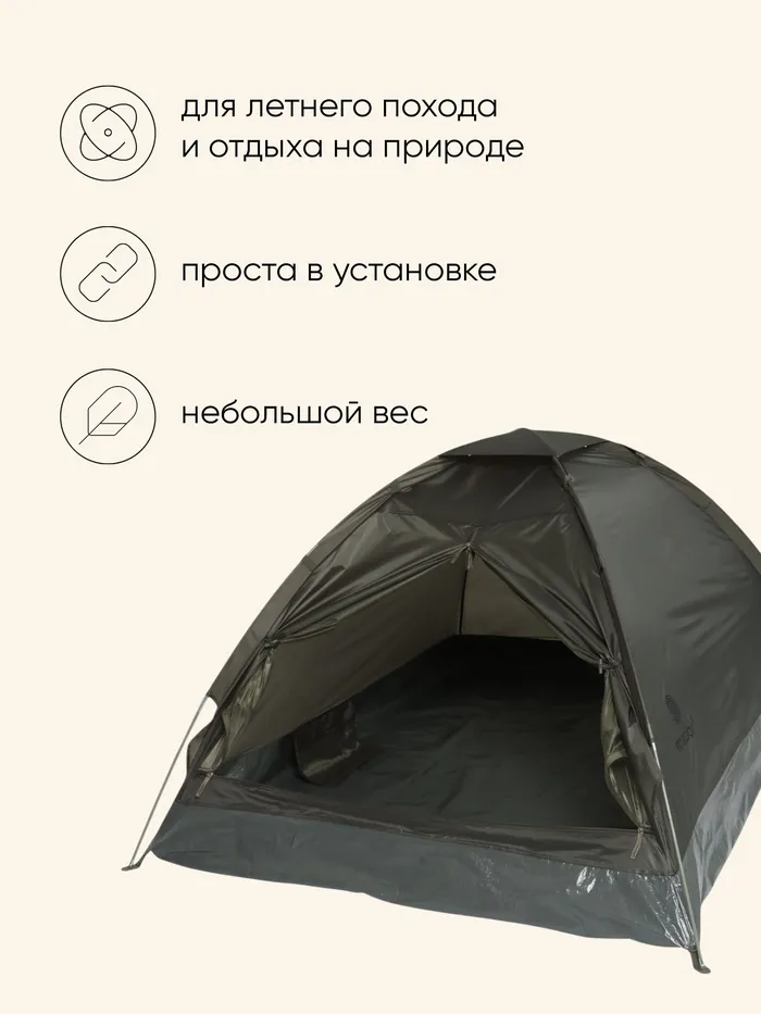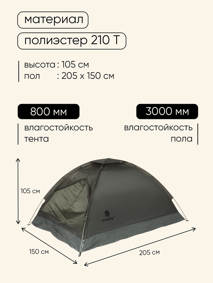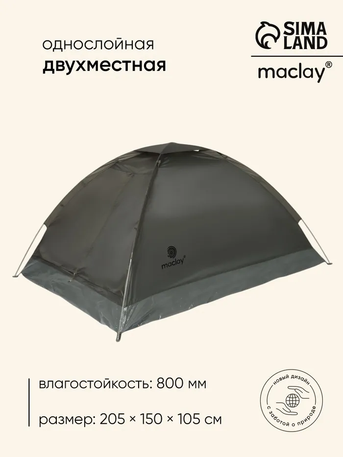 Палатка туристическая 2-местная maclay fisht te 2, 205×150×105 см, трекинговая, однослойная, зелёная — Характеристики