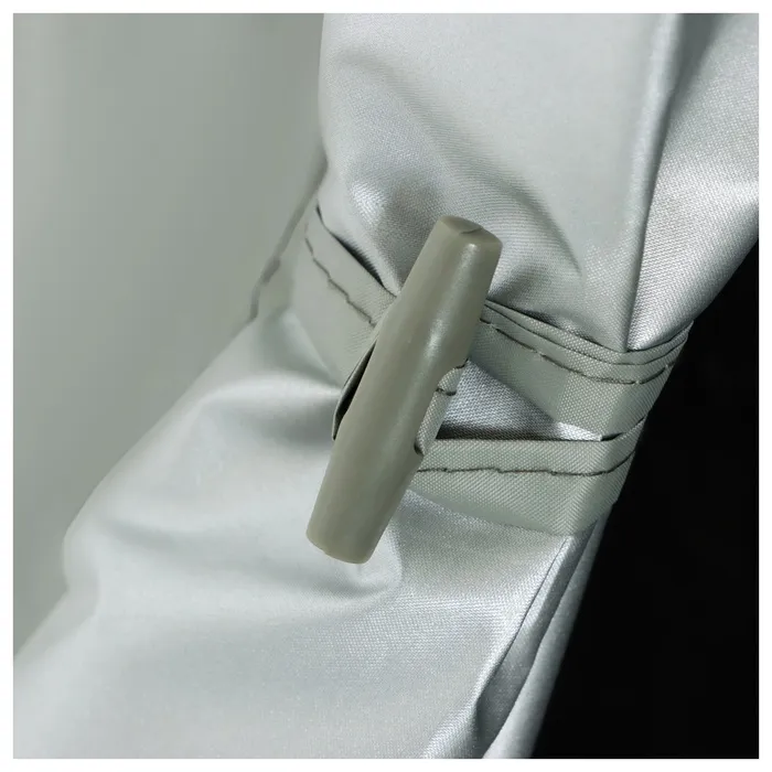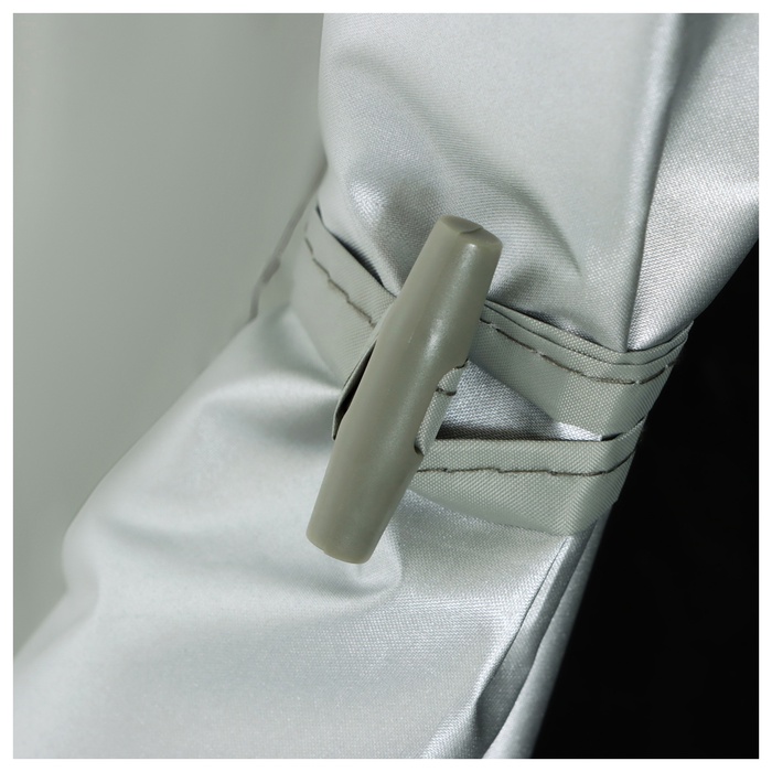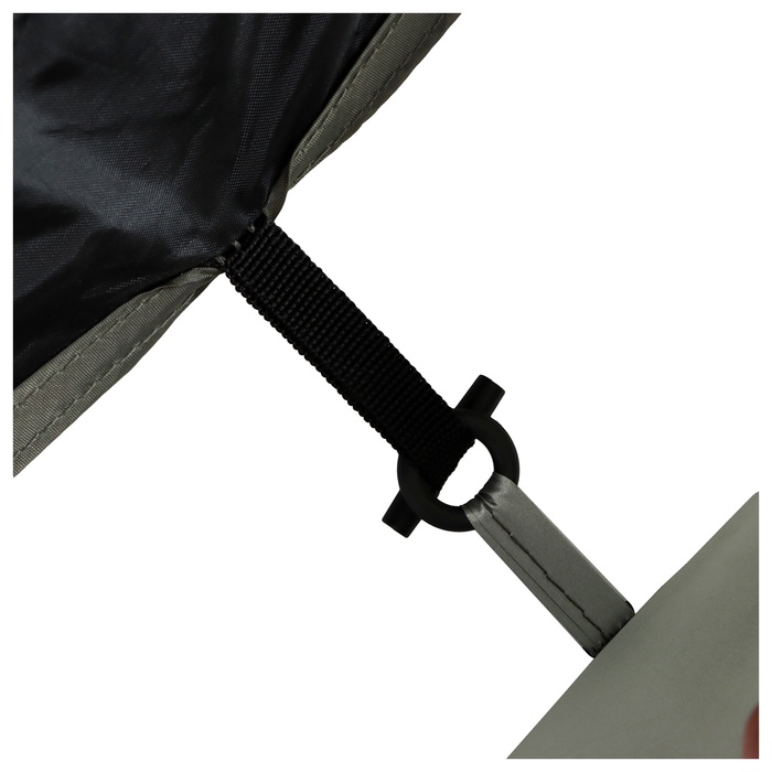- Тент выполнен из прочного полиэстера с добавлением серебра, дополнительно защищающего от проникновения ультрафиолета.