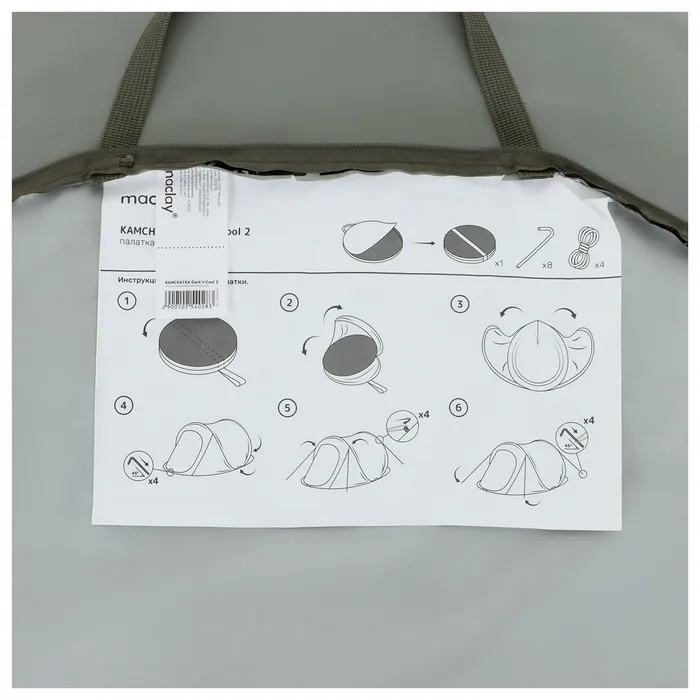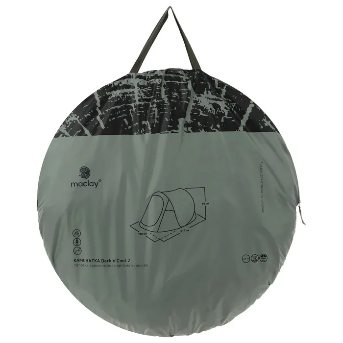 Палатка туристическая 2-местная maclay KAMCHATKA Dark'n'Cool 2, 215×120×95 см, автоматическая, трекинговая, двухслойная, зелёная — Характеристики