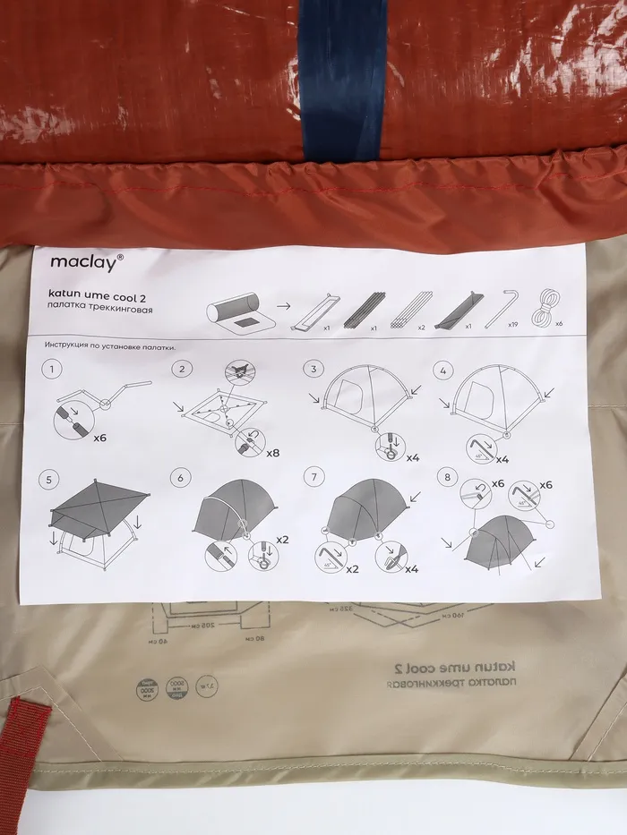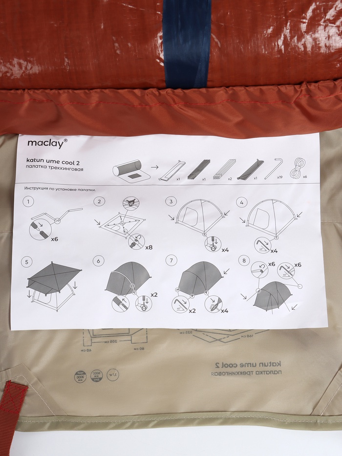 Палатка туристическая 2-местная maclay katun ume cool 2, 325×160×120 см, трекинговая, двухслойная, с тамбуром, бежевая — Характеристики