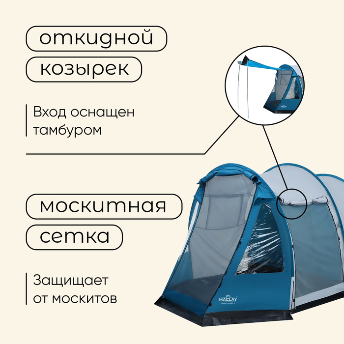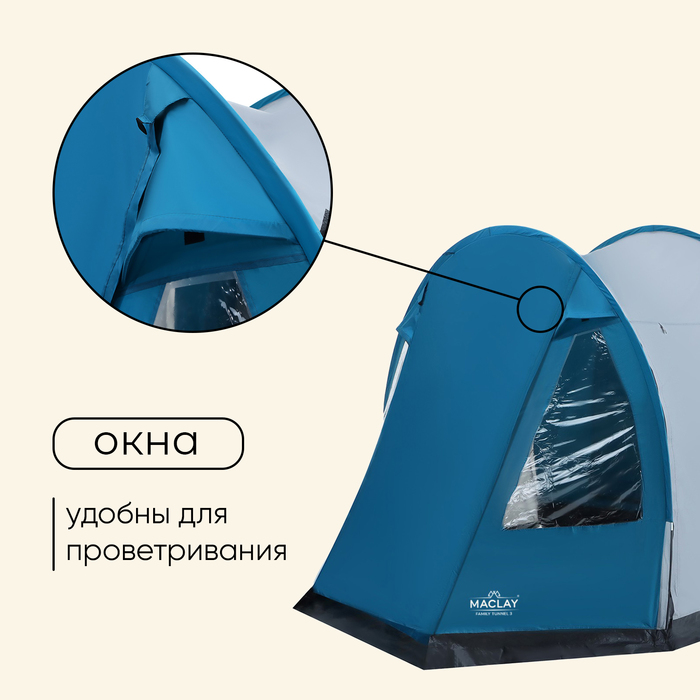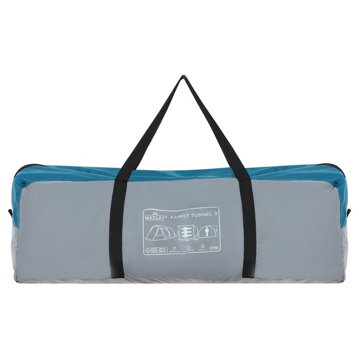 Палатка туристическая 3-местная maclay FAMILY TUNNEL 3, 380×210×170 см, кемпинговая, двухслойная, с тамбуром, голубая — Характеристики