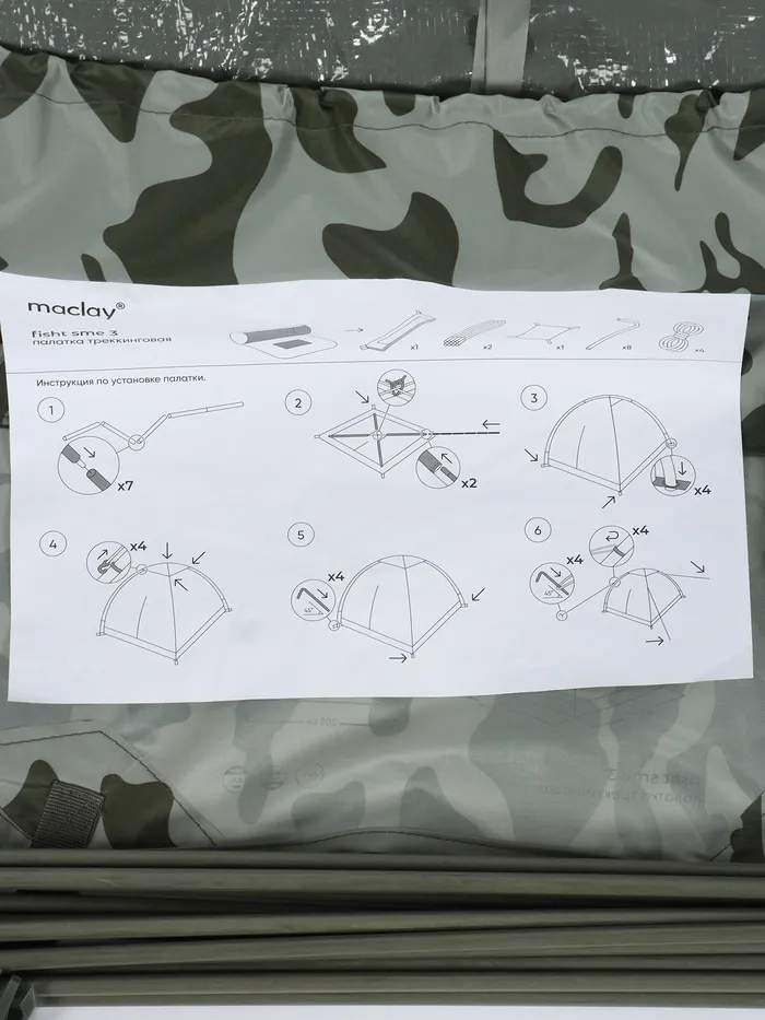 Палатка туристическая 3-местная maclay fisht sme 3, 205×180×120 см, трекинговая, однослойная, цвет МИКС — Характеристики