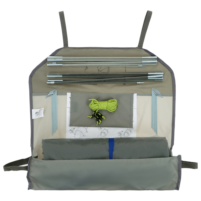 - Тент выполнен из прочного полиэстера с добавлением рипстопа, устойчивого к разрывам и растяжениям.