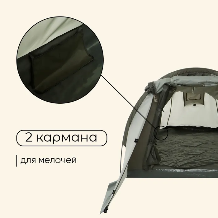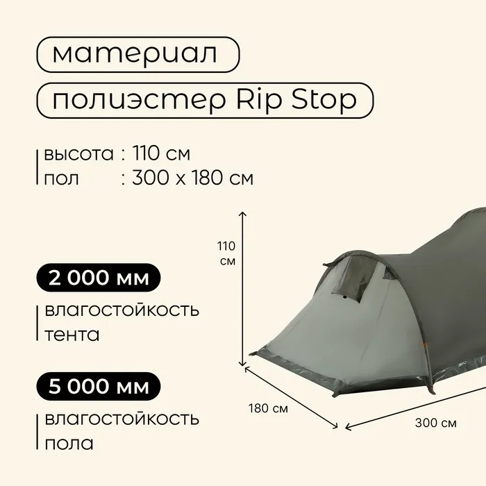 Палатка туристическая 3-местная maclay KAMA 3, 300×180×110 см, трекинговая, однослойная, с тамбуром, зелёная — Характеристики