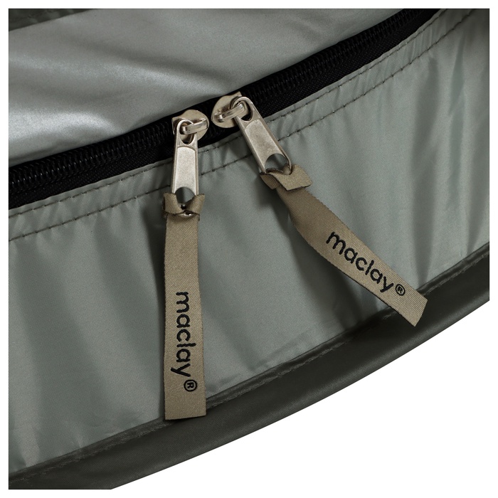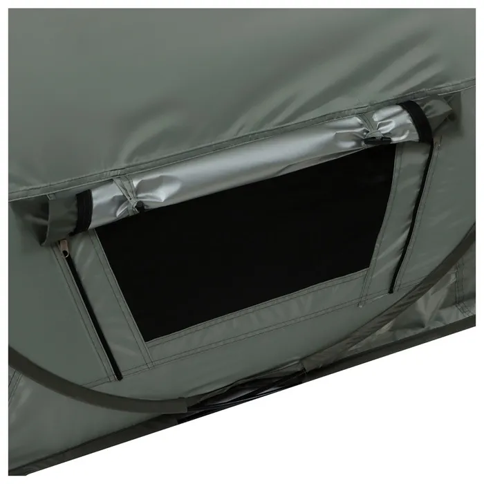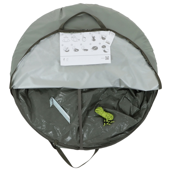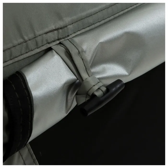 - Тент выполнен из прочного полиэстера с добавлением серебра, дополнительно защищающего от проникновения ультрафиолета.