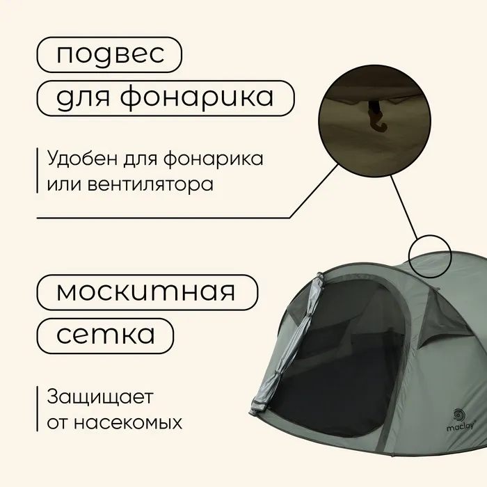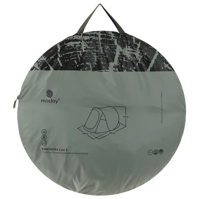 Палатка туристическая 3-местная maclay KAMCHATKA Cool 3, 245×180×115 см, автоматическая, трекинговая, однослойная, зелёная — Характеристики