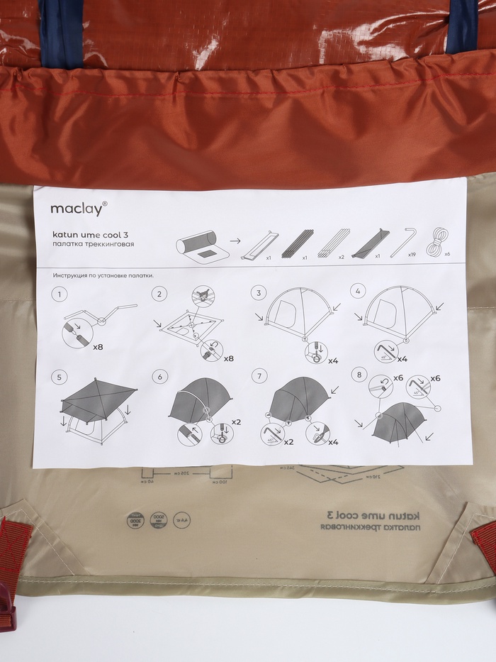 Палатка туристическая 3-местная maclay katun ume cool 3, 345×210×130 см, трекинговая, двухслойная, с тамбуром, бежевая — Характеристики