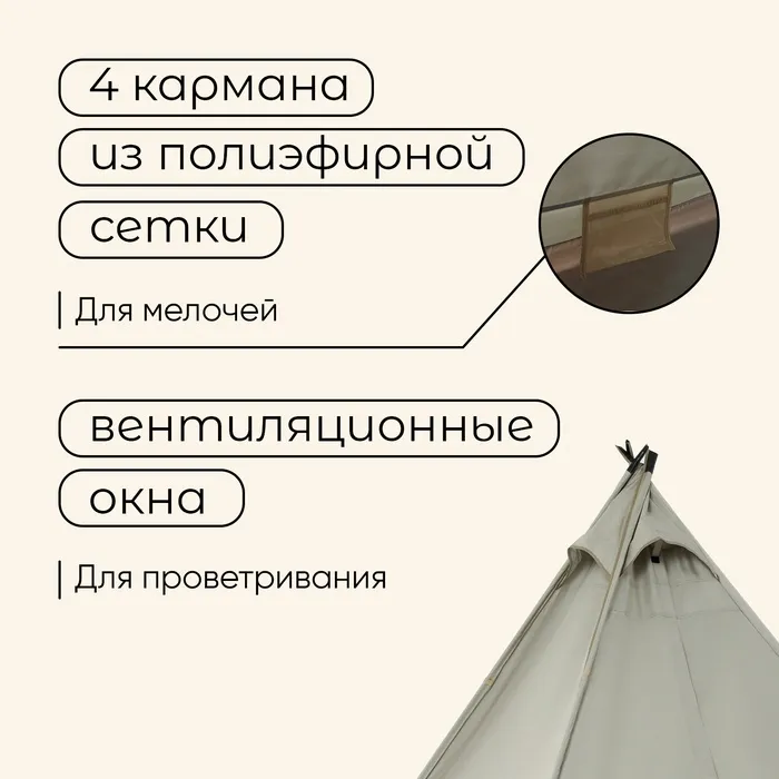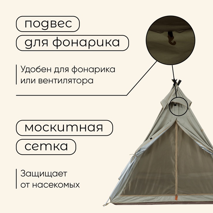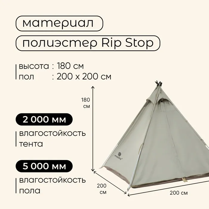 Палатка туристическая 3-местная maclay TUNDRA Cool 3, 200×200×180 см, кемпинговая, однослойная, бежевая — Характеристики