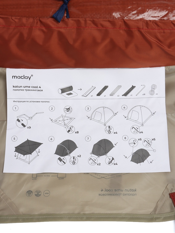 Палатка туристическая 4-местная maclay katun ume cool 4, 380×210×135 см, трекинговая, двухслойная, с тамбуром, бежевая — Характеристики