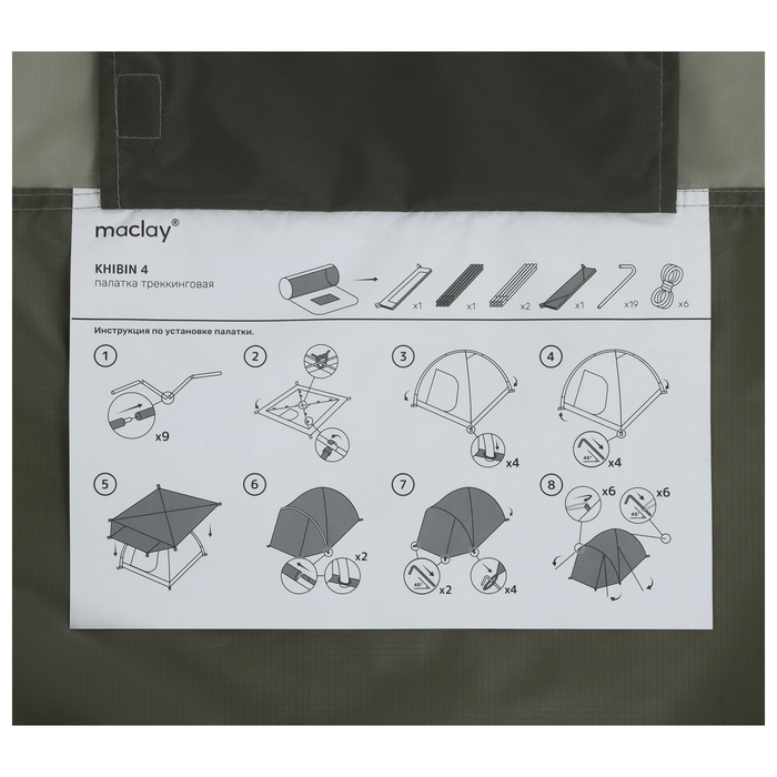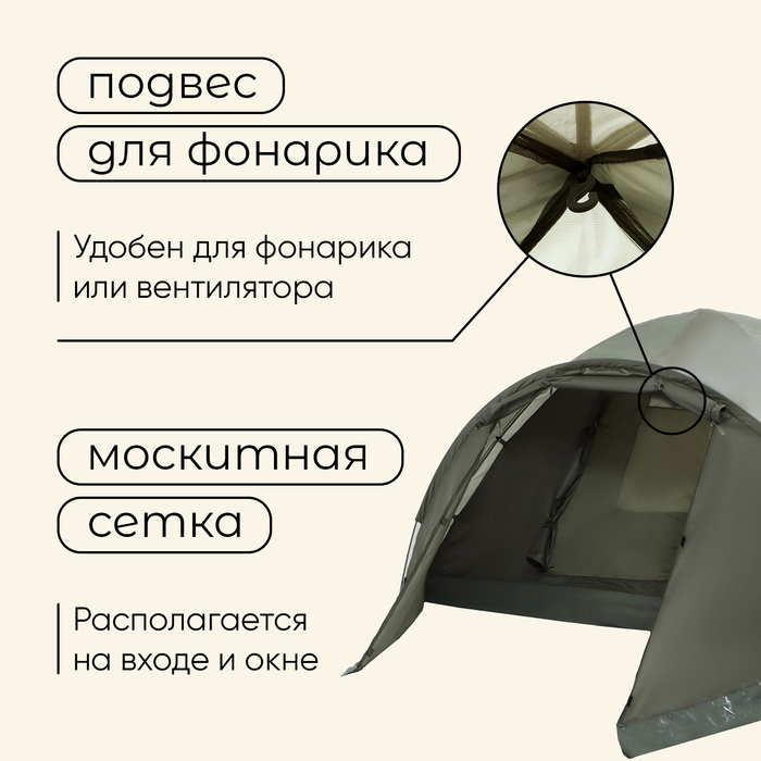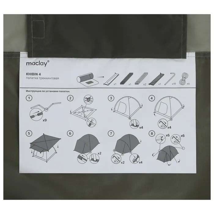 Палатка туристическая 4-местная maclay KHIBIN 4, 330×240×135 см, трекинговая, двухслойная, с тамбуром, зелёная — Характеристики