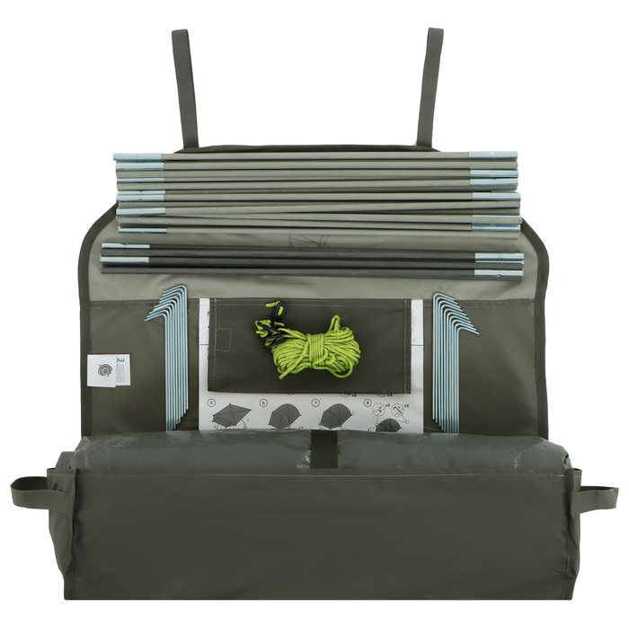 - Тент выполнен из прочного полиэстера с добавлением рипстопа, устойчивого к разрывам и растяжениям.