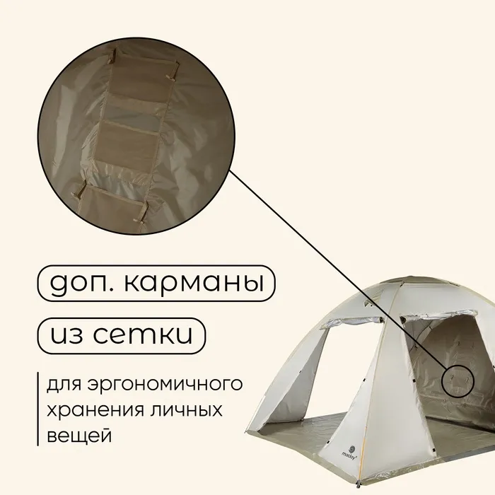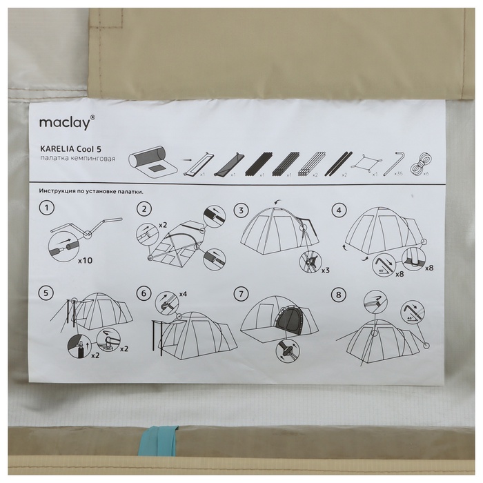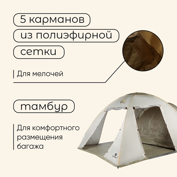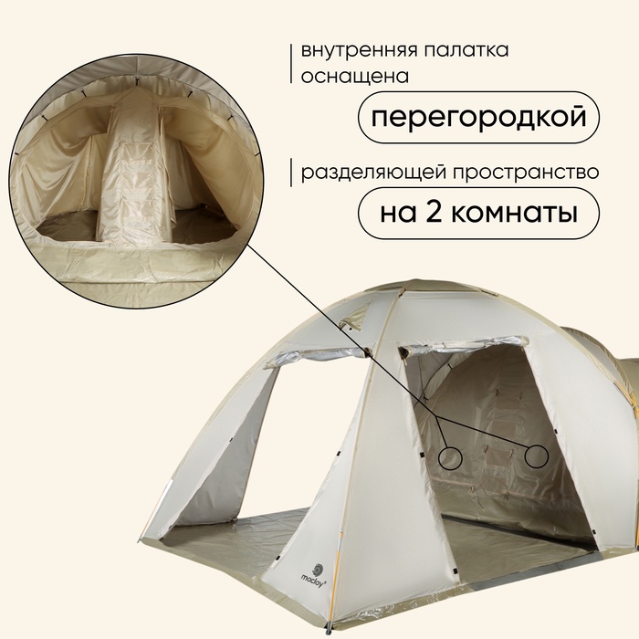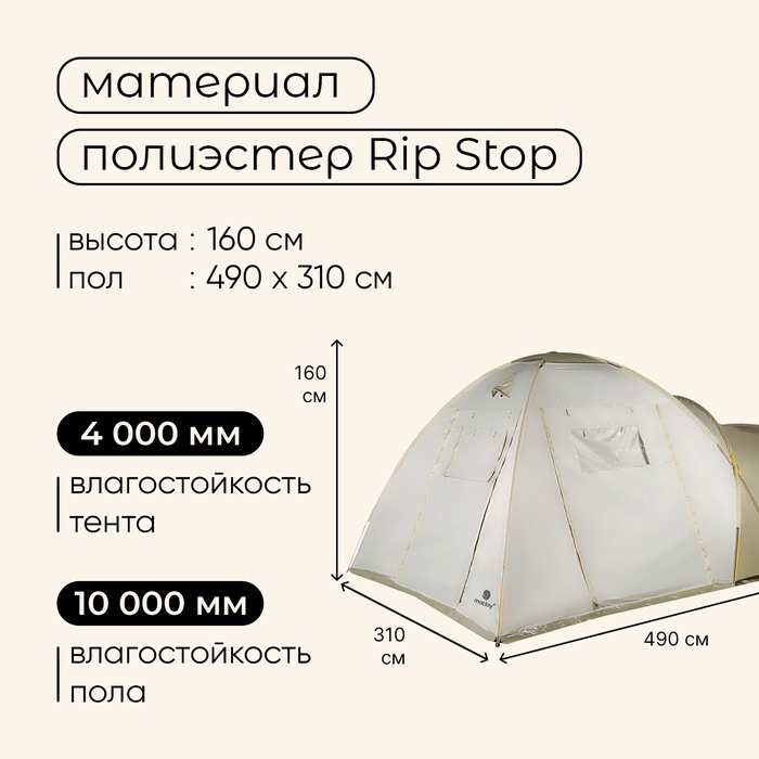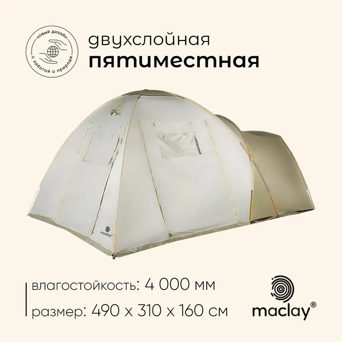 Палатка туристическая 5-местная maclay KARELIA Cool 5, 490×310×160 см, кемпинговая, двухслойная, с тамбуром, бежевая — Характеристики