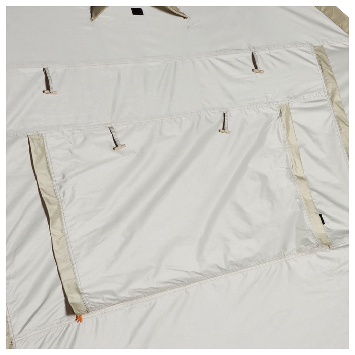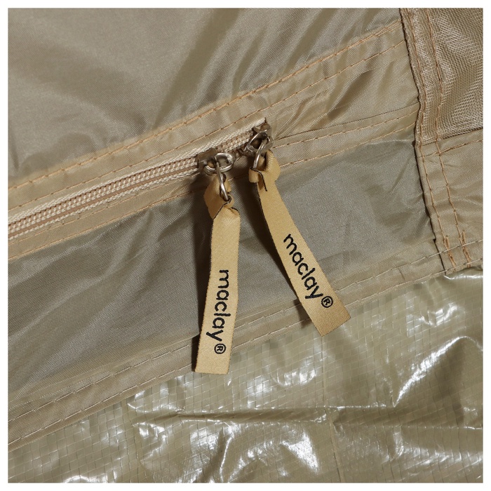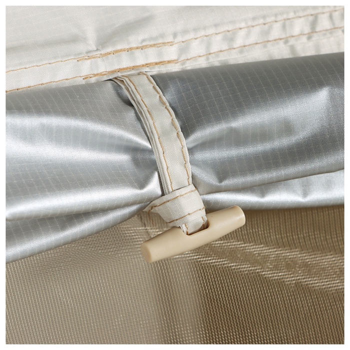 - Тент выполнен из прочного полиэстера с добавлением рипстопа, устойчивого к разрывам и растяжениям.
