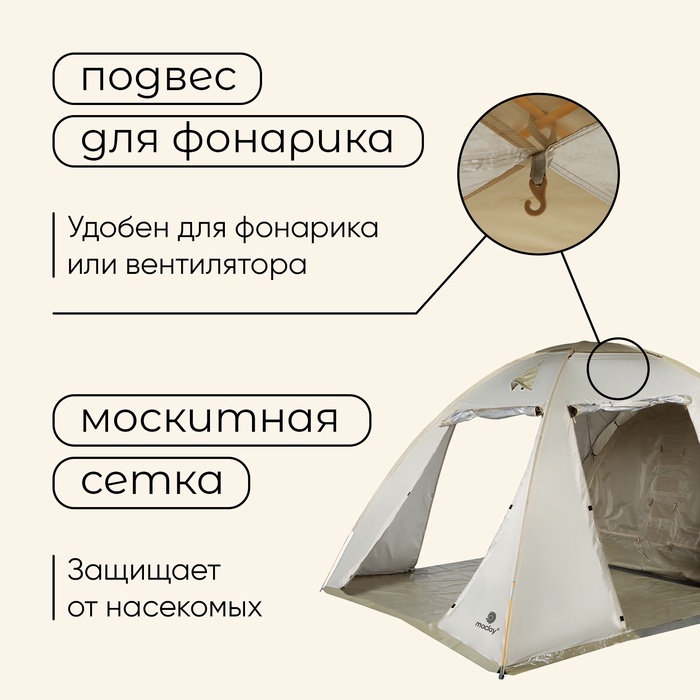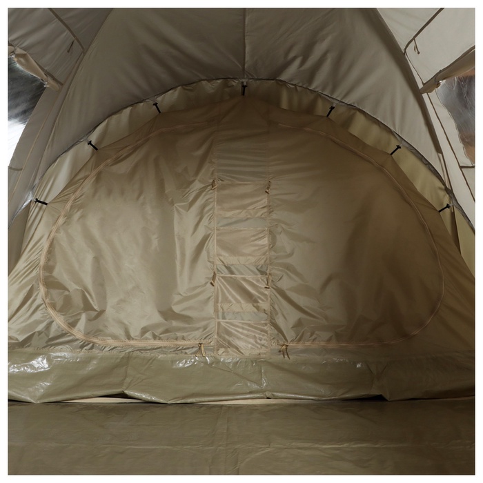- Пол палатки выполнен из армированного полиэстера и обладает высокой влагостойкостью.