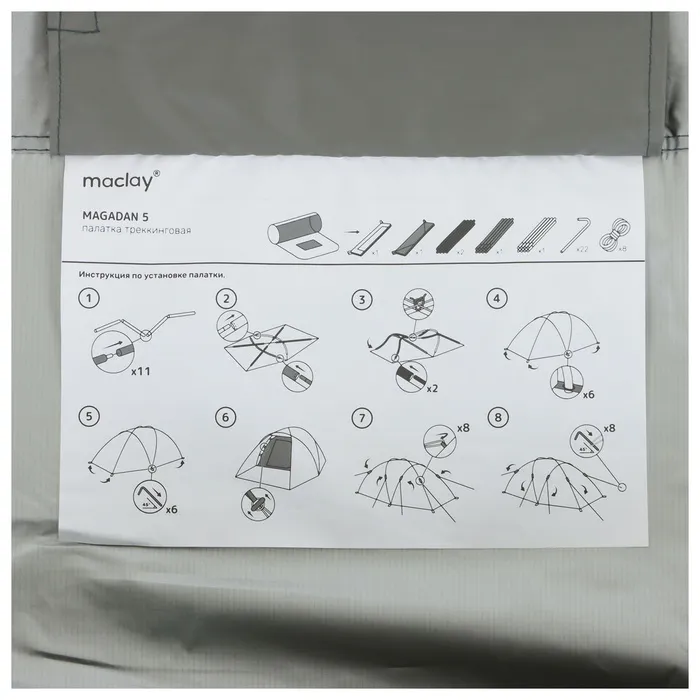 Трекинговая влагоотталкивающая палатка magadan cool 5 разработана для комфортного размещения пяти человек. Перед входом в спальное отделение предусмотрен тамбур для хранения личных вещей и укрытия от дождя. За счёт купольной формы после дождя вода не скапливается вверху тента, а стекает вниз.