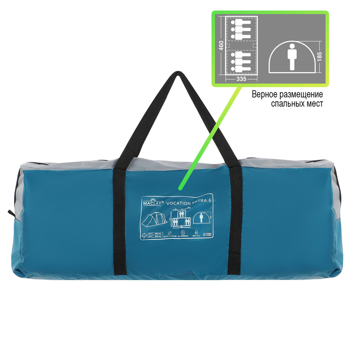 Палатка туристическая 6-местная maclay VOCATION EXTRA 6, 460×335×185 см, кемпинговая, двухслойная, с тамбуром, голубая — Характеристики