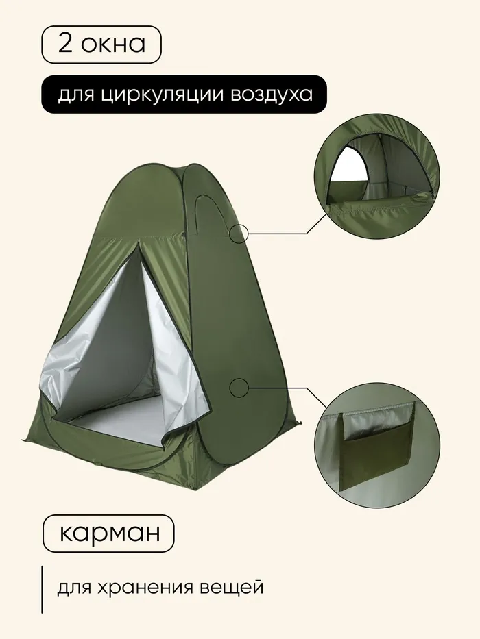 Палатка туристическая для душа и туалета maclay, 150×150×210 см, автоматическая, трекинговая, однослойная, зелёная — Характеристики