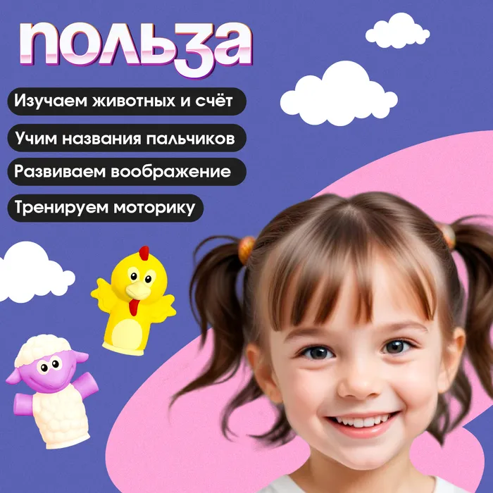 Набор пальчиковых игрушек «Милые зверята» рекомендован детям старше 3 лет.