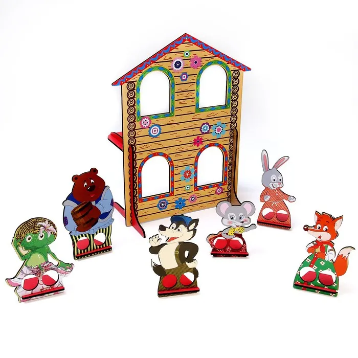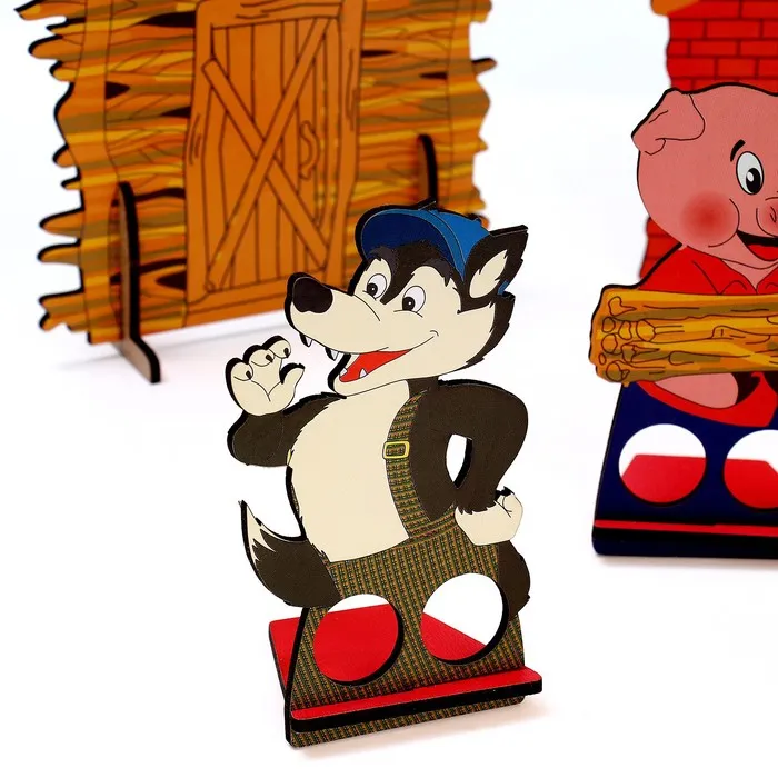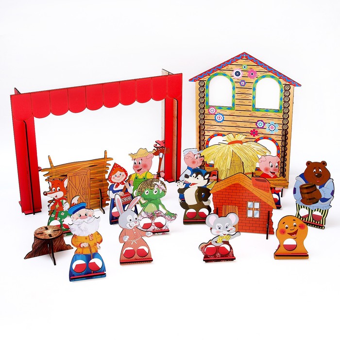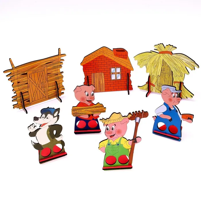 Пальчиковый театр «3 поросёнка», набор: теремок и 6 кукол, 14 см
