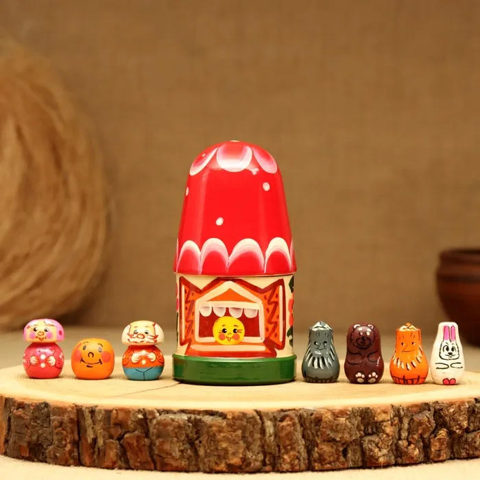Пальчиковый театр — это игра для развития речевых и творческих навыков у ребёнка. В наборе деревянные лакированные куклы, которые надеваются на пальчики, и домик для декораций. Фигурки созданы по мотивам русских народных сказок. Если малыш уже знает сюжет, он с радостью его инсценирует, если нет — вы с помощью кукол познакомите его.