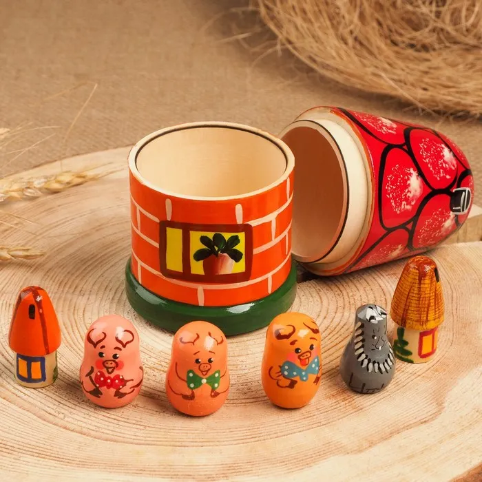 Пальчиковый театр «3 поросёнка», набор: теремок и 6 кукол, 14 см — Характеристики