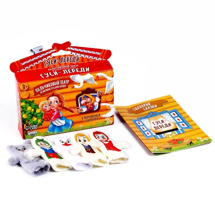 Пальчиковый театр «Гуси-лебеди», набор: 5 персонажей, сценарий — Характеристики