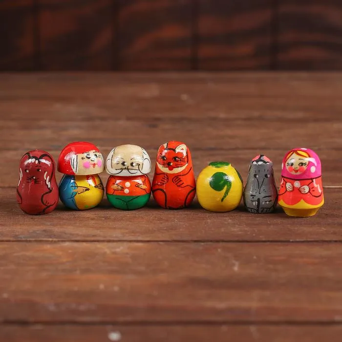 Куклы-матрёшки представляют собой героев русских народных сказок. Игрушка научит отличать большое от малого, строить фигуры в ряд по величине: от меньшего к большему, поможет малышу запомнить героев сказки и научиться разыгрывать её.