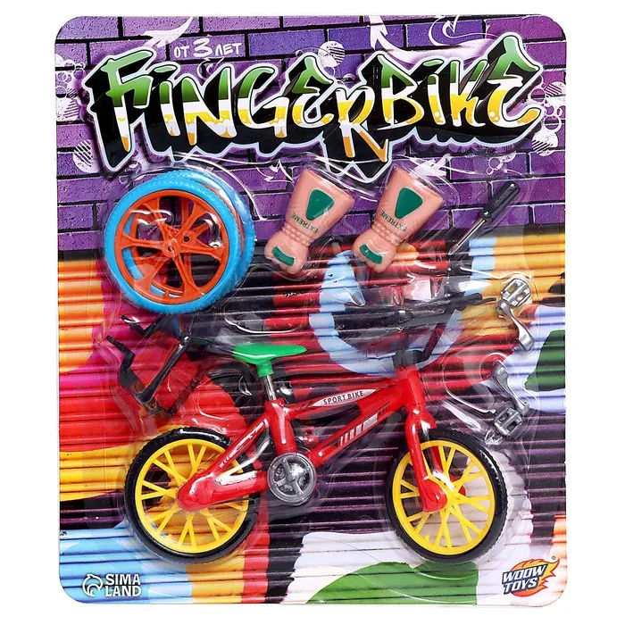- В комплект входит фингербайк — уменьшенная версия велосипеда.