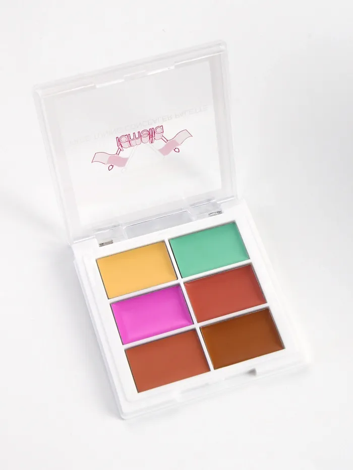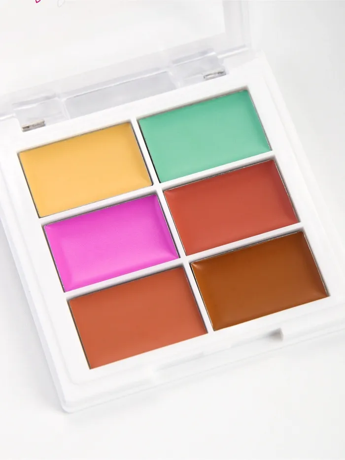 Универсальная палетка из 6 водостойких оттенков — это ваш персональный инструмент для идеального тона и точечной маскировки. Каждый цвет работает на свою задачу: нейтрализует покраснения, осветляет зону под глазами, скрывает несовершенства и подчёркивает черты лица.